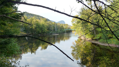 Descente en canot à 300 mètres de la mise à l’eau de la descente en canot de la rivière Bras-du-Nord (location de canots et service de navette offert par la coopérative).